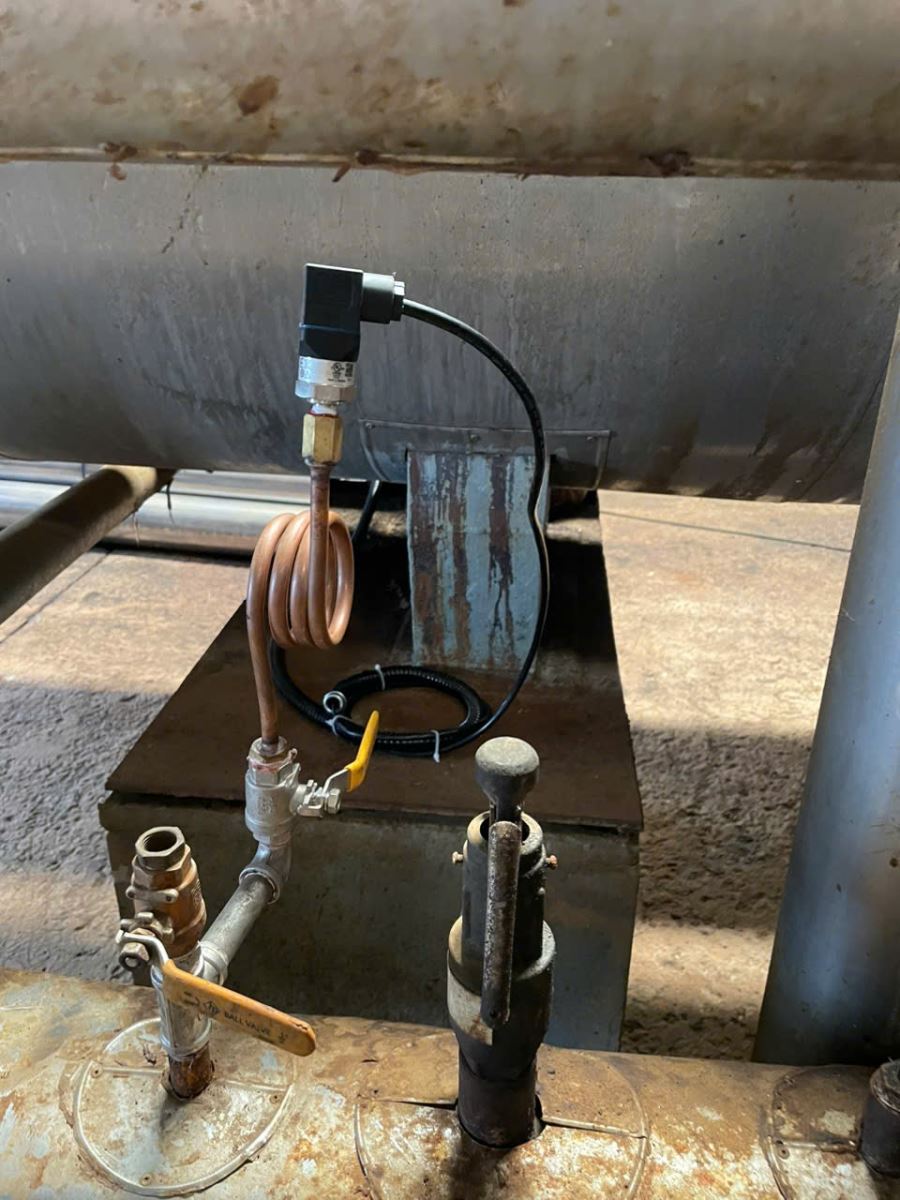 Các cảm biến áp suất và nhiệt độ được gắn vào các vị trí đo trên hệ thống đường ống và thiết bị gia nhiệt, sử dụng đầu dò chuyên dụng kèm theo ống siphon giúp bảo vệ cảm biến trước môi trường nhiệt độ cao. Dữ liệu thu thập được truyền về tủ điều khiển trung tâm thông qua dây tín hiệu được cố định gọn gàng, đảm bảo an toàn và chống rung.